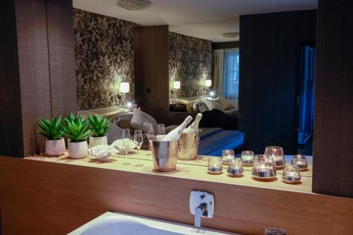Guests will have a special experience as this double room offers a hot tub and a sauna. Providing free toiletries and bathrobes, this double room includes a private bathroom with a bath, a shower and a hairdryer. The spacious double room provides a flat-screen TV with satellite channels, a private entrance, a seating area, a wardrobe as well as a quiet street view. The unit offers 1 bed.