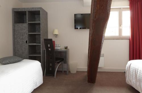 All of the rooms at La Table de Gustave offer views of the town and a flat screen TV. Each one features a private bathroom with amenities and a bath or shower. All rooms have access to the free Wi-Fi.