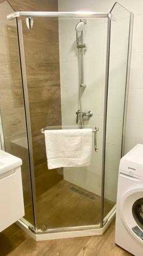 This apartment consists of 1 living room, 1 separate bedroom and 1 bathroom with a walk-in shower and free toiletries. Meals can be prepared in the kitchen, which is equipped with a stovetop, a refrigerator, kitchenware and a microwave. The air-conditioned apartment provides a flat-screen TV with cable channels, a washing machine, soundproof walls, a tea and coffee maker as well as sea views. The unit offers 2 beds.