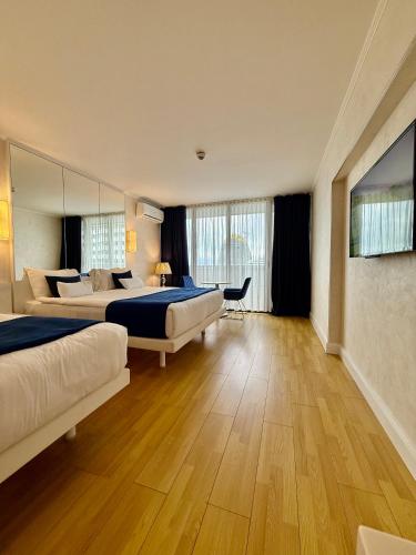 Facing the beachfront, Luxury Batumi Hotel offers 5-star accommodation in Batumi and features a private beach area, terrace and restaurant. Featuring a bar, the hotel is close to several noted attractions, around 200 metres from Batumi Beach and around less than 1 km from Aquapark Batumi. The accommodation provides a 24-hour front desk, airport transfers, room service and free WiFi throughout the property.