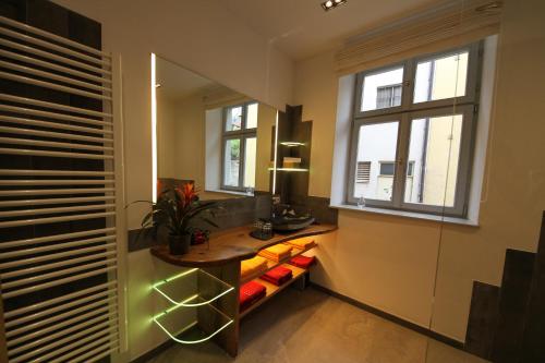 The apartments at Altstadtpalais im Sand are each individually decorated with great details and feature a seating area and a private bathroom with either a bath or shower. Guests can enjoy the view of the city from the room.
