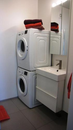 This modern apartment features a sofa, laundry facilities, high-speed WiFi and a sea view.