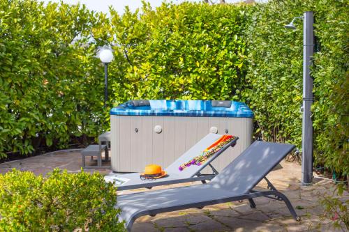 This villa features a hot tub and a fireplace. Boasting a private entrance, this air-conditioned villa features 1 living room, 3 separate bedrooms and 3 bathrooms with a shower and a bidet. Guests will find a stovetop, a refrigerator, a dishwasher and kitchenware in the fully equipped kitchen. The villa also comes with a barbecue. Featuring a terrace with garden views, this villa also features a washing machine and a flat-screen TV with satellite channels. The unit has 5 beds.