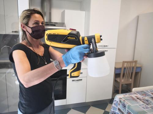 The spacious triple room features air conditioning, a dining area, as well as a private bathroom boasting a shower and a bidet. The well-equipped kitchen has a stovetop, a refrigerator, kitchenware and an oven. Rooms on the upper floors are reachable by lift. The unit has 5 beds.