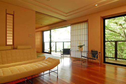 Guests will have a special experience as the suite features a private open-air bath. Featuring 1 bedroom, this spacious suite offers 1 bathroom with a bath, a seating area and terrace where you can relax. The air-conditioned suite provides a flat-screen TV, tatami, a minibar, a wardrobe as well as mountain views. The unit has 2 futons.