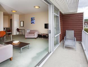 This contemporary, spacious, one-bedroom apartment is located on the beach side of the property and is a short walk from the town centre. The separate bedroom has a queen size bed and en suite bathroom with a bathtub and shower over bath. All bedding and bathroom linen are included. The spacious lounge area comes with a two-seater sofa, TV and radio. There is a single bed available in the lounge area. The apartment has a kitchenette equipped with twin electric cooking hob, microwave, tea and coffee facilities, toaster and an under-bench fridge/freezer. Leading out from the lounge is your own balcony with glimpses of nearby Buffalo Beach.