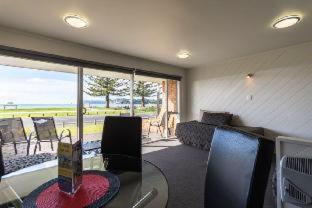 This spacious and comfortable beachfront suite features a private patio overlooking Mercury Bay. It also offers a flat-screen TV with satellite channels and a kitchenette with a microwave, refrigerator and tea/coffee making facilities. Refurbished in July 2018, the bathroom features a shower. Please note that this suite has a bedroom with 1 queen bed, and a living area with 1 single bed.
