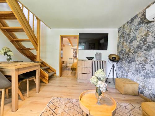 This air-conditioned holiday home features 2 bedrooms, a flat-screen TV, a dining area, a fully equipped kitchenette with a dishwasher, and a living room. Towels and bed linen are available in the holiday home. The property has an outdoor dining area.