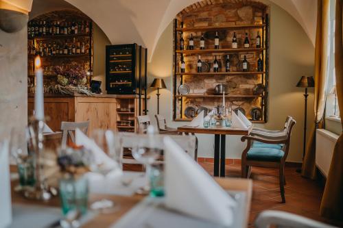 The on-site restaurant serves delicious local cuisine, which guests can enjoy by the fireplace, or on the sunny terrace during summer. The property also features the elegant Blue Salon and the Pink Salon with views of the river and park—both rooms can be rented by groups for various events and celebrations.